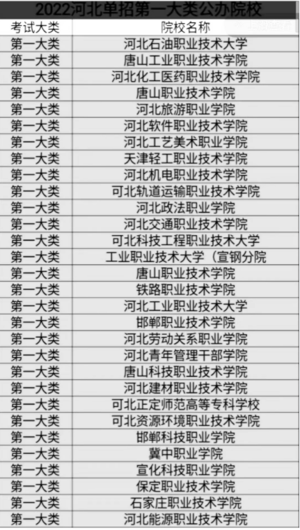 河北單招一類公辦學校名單