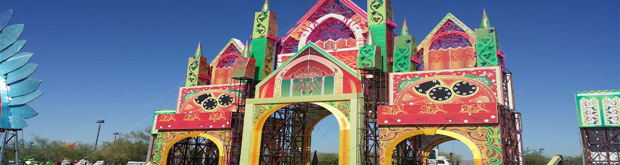 四川藝思特彩燈文化傳播有限公司,自貢燈貿(mào)集團(tuán)股份有限公司舉辦的“世界之光--彩燈嘉年華”將于2016年11月至2017年1月在美國(guó)亞利桑那州州府菲尼克斯展出。燈展的近50個(gè)集裝箱已于上月中旬全部抵達(dá)菲尼克斯,目前燈組安裝、布展工作正在緊鑼密鼓的進(jìn)行。