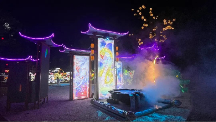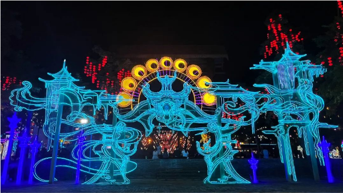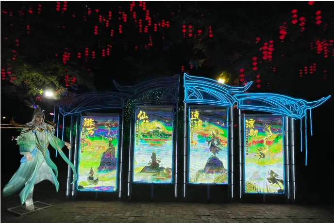 本次燈展再掀“尋蹤仙文化之旅”風(fēng)潮。開封萬(wàn)歲山·大宋武俠城內(nèi),游人如織,全新仙俠場(chǎng)景,為諸位仙友打造出沉浸式仙俠文化彩燈光影盛宴,通過(guò)瀟灑肆意的仙俠世界與傳統(tǒng)彩燈文化多維度結(jié)合的方式,以全新的模式詮釋中國(guó)傳統(tǒng)文化的璀璨魅力,解鎖江湖游玩的不同體驗(yàn)。